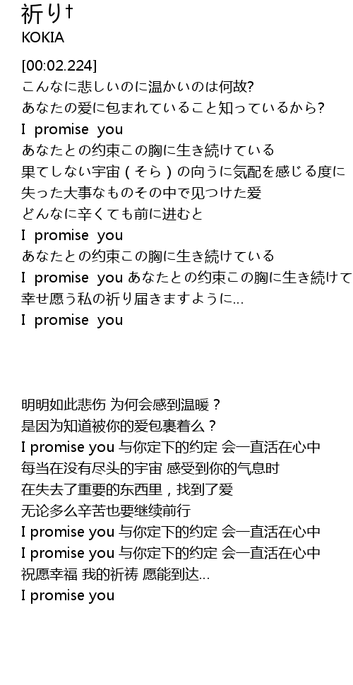 | [03:48.31] | I promise you yuē shù xiōng shēng xu |