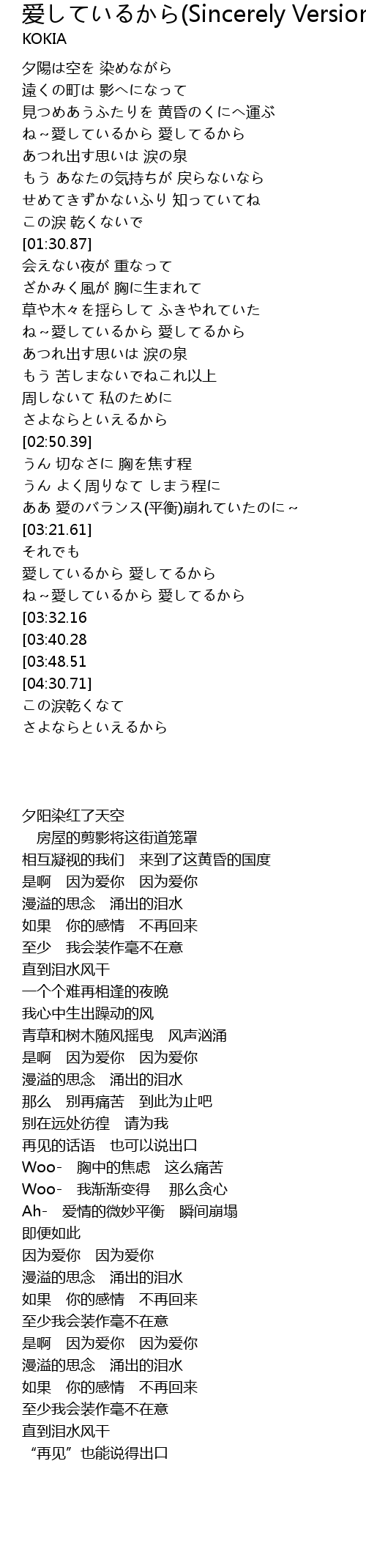 | [00:50.83] | ね~愛しているから 愛してるから |