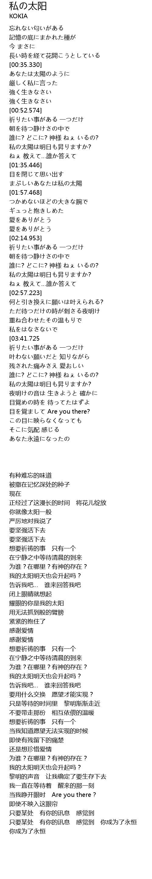 | [04:15.055] | 私の太陽は明日も昇りますか? |