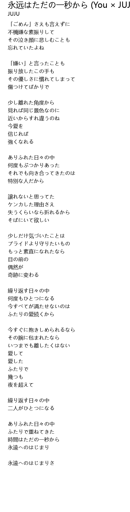 | Song | 永远はただの一秒から (You × JUJU KARAOKE ver.) |