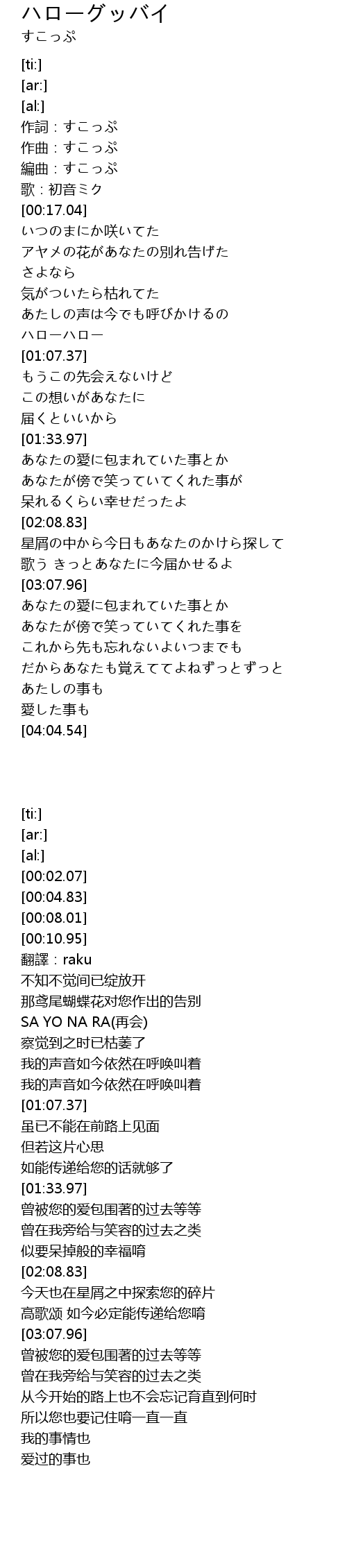| [00:43.57] | さよなら |