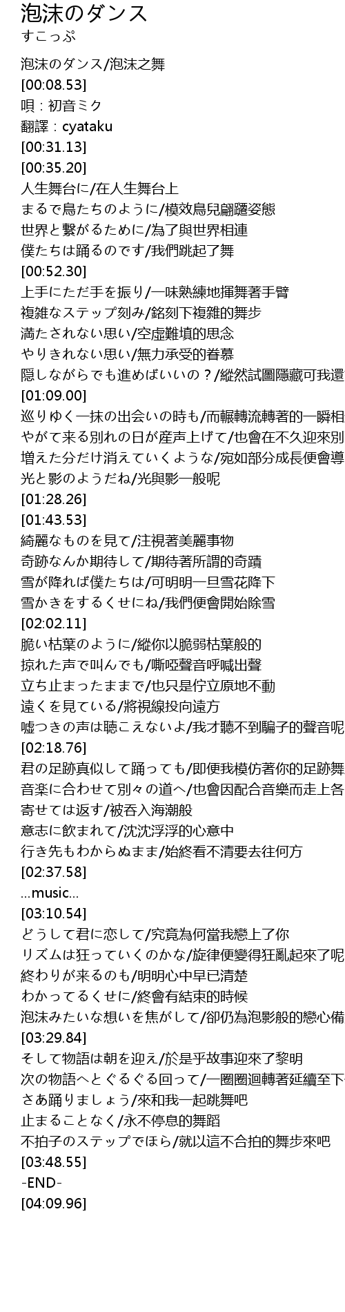 | [00:00.95] | 泡沫のダンス/泡沫之舞 |