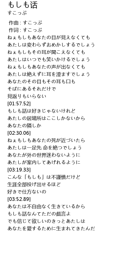 | [00:00.95] | ねぇもしもあなたの目が見えなくても |