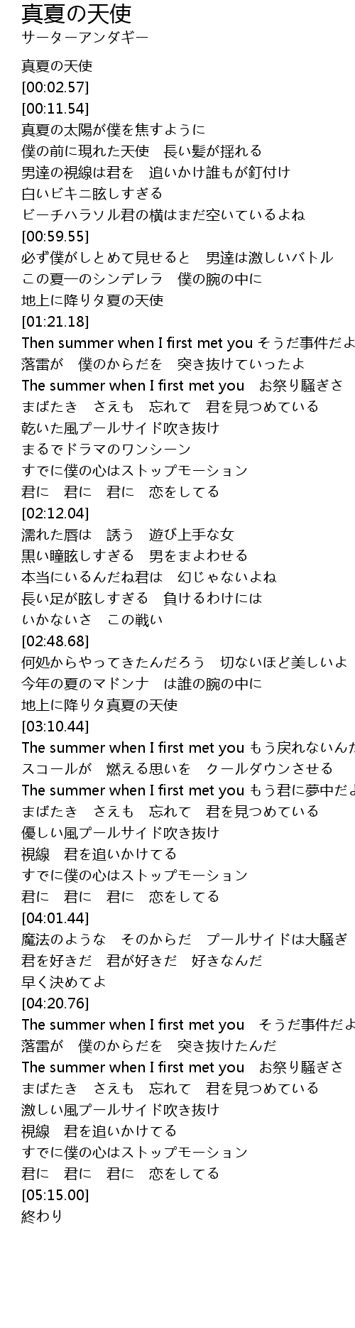 | [03:04.47] | 地上に降りタ真夏の天使 |