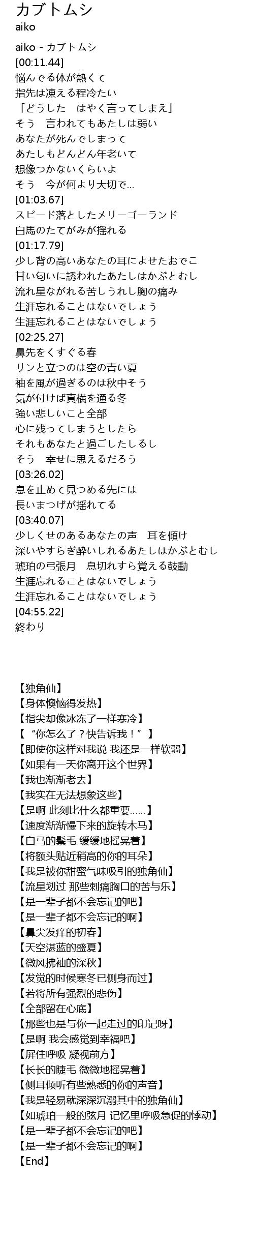 | [00:00.00] | aiko - カブトムシ |