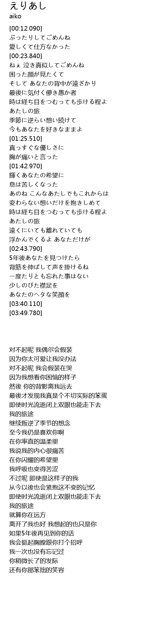 | [03:04.470] | 5年後あなたを見つけたら |