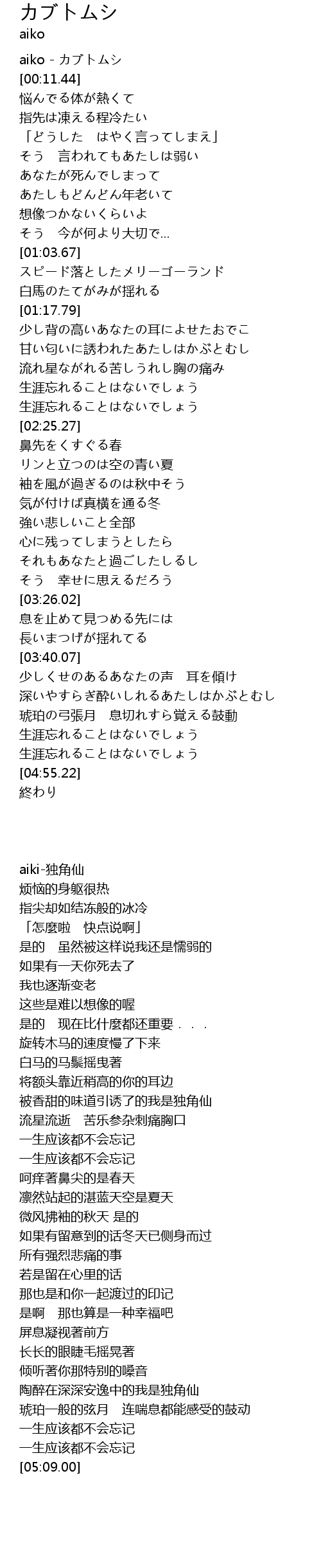 | [00:00.00] | aiko - カブトムシ |