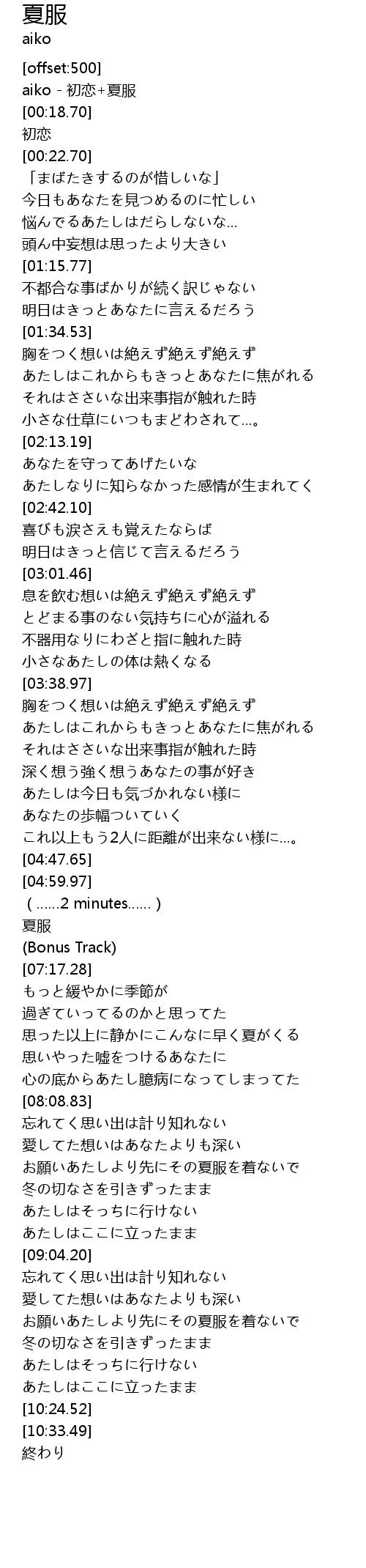 | [00:00.00] | aiko - 初恋+夏服 |