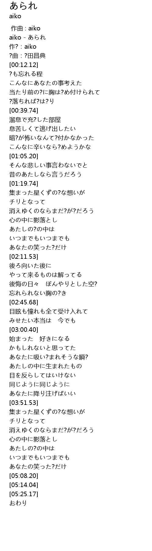 | [02:33.52] | 後悔の日々 ぼんやりとした空? |