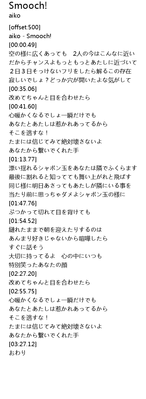 | [00:00.00] | aiko - Smooch! |