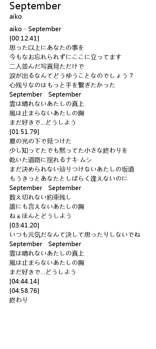 | [01:04.76] | 心残りなのはもっと手を繋ぎたかった |