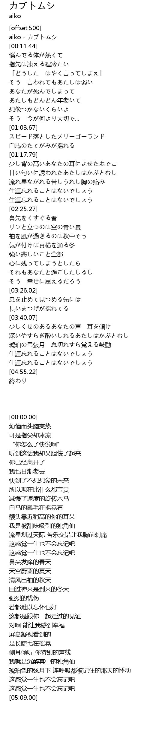 | [00:00.00] | aiko - カブトムシ |