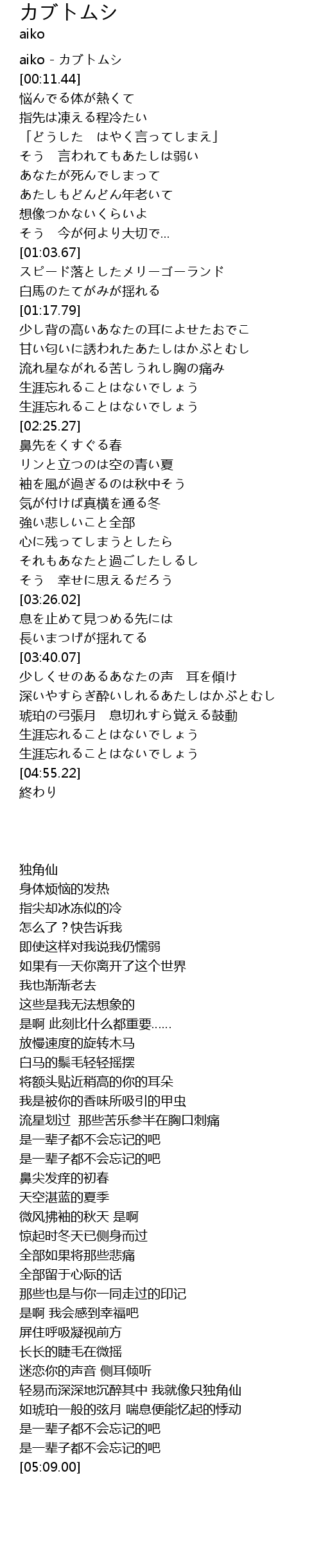 | [00:00.00] | aiko - カブトムシ |