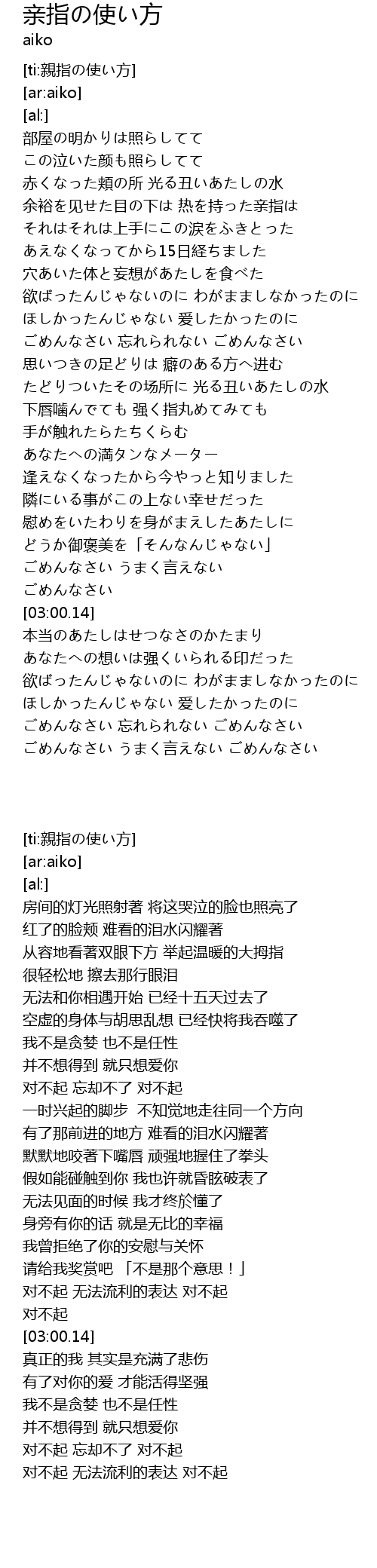 | [03:58.16] | ごめんなさい 忘れられない ごめんなさい |
