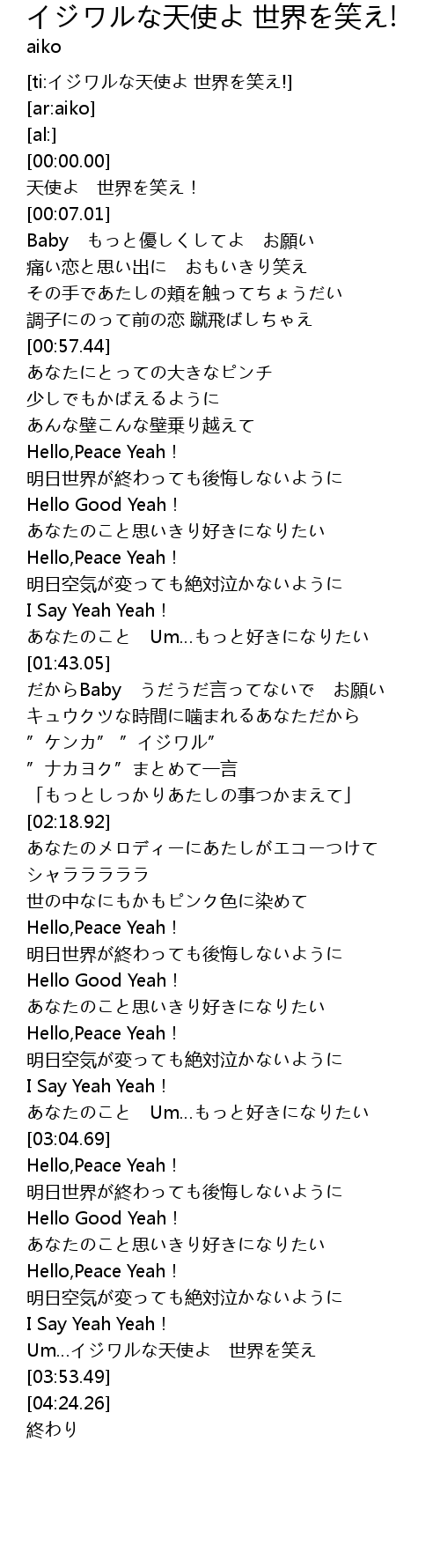 | [ti:イジワルな天使よ 世界を笑え!] | |