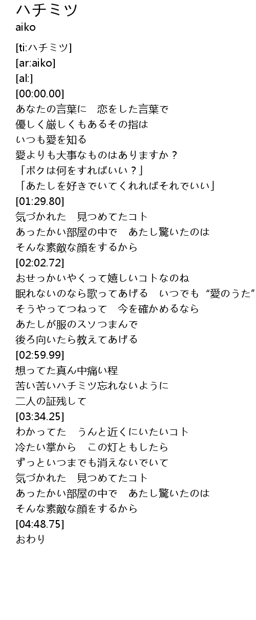 | [04:16.59] | 気づかれた 見つめてたコト |