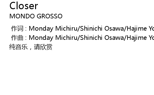 | [00:01.000] | zuò qǔ : Monday Michiru Shinichi Osawa Hajime Yoshizawa |