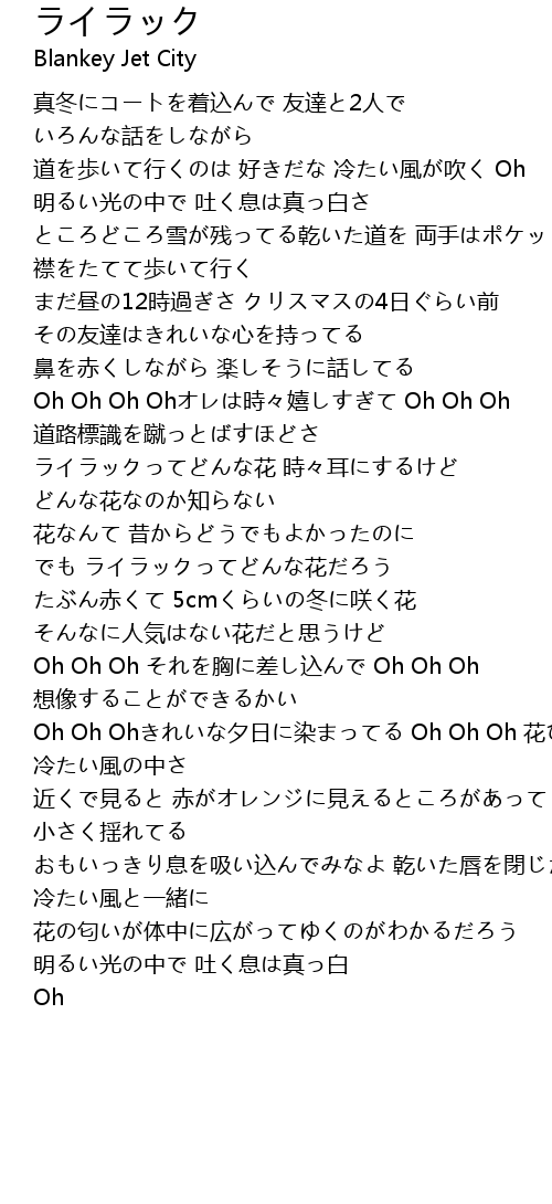| 道を歩いて行くのは 好きだな 冷たい風が吹く Oh | |