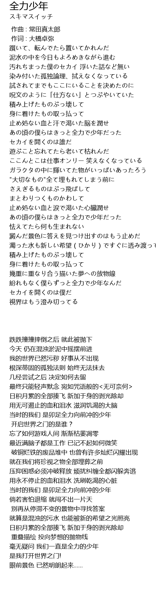| [03:22.910] | 紛れもなく僕らずっと全力で少年なんだ |