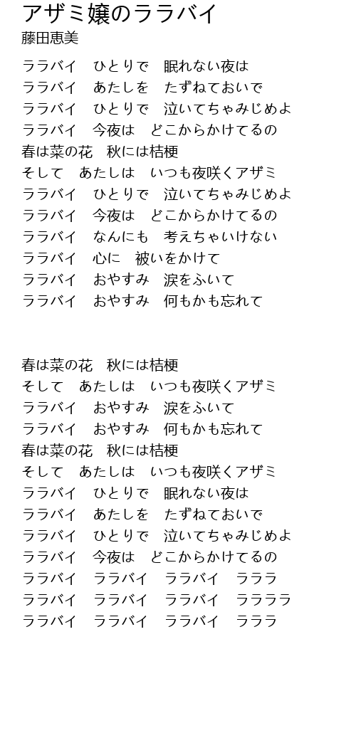 | ララバイ ひとりで 泣いてちゃみじめよ | |