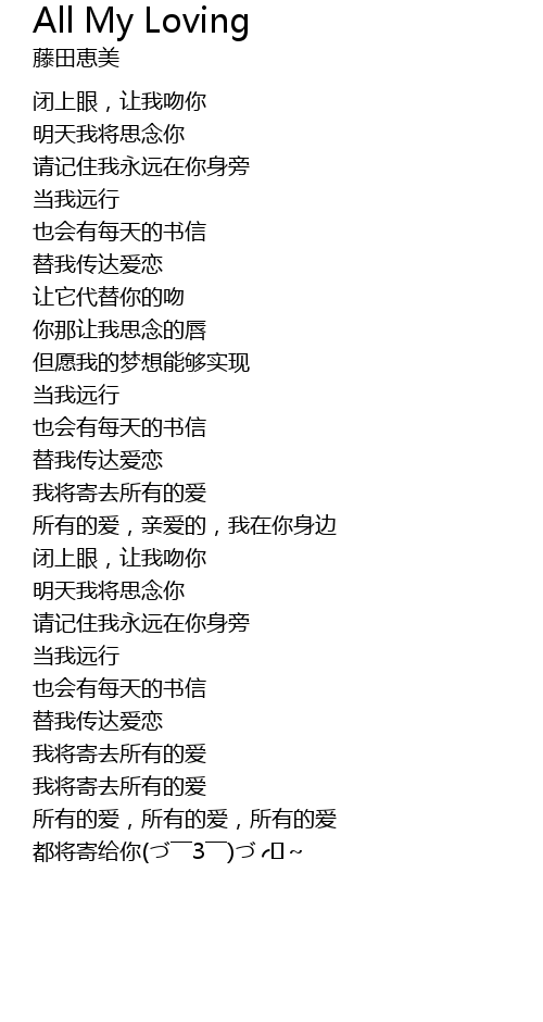 | [02:33.728] | 我将寄去所有的爱 |