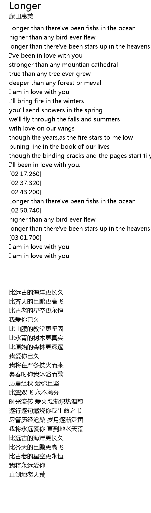 | [02:44.500] | Longer than there' ve been fishs in the ocean |