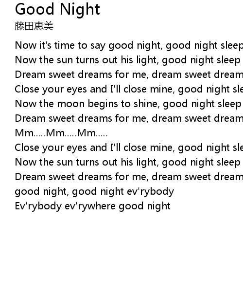 | Close your eyes and I'll close mine, good night sleep tight | |