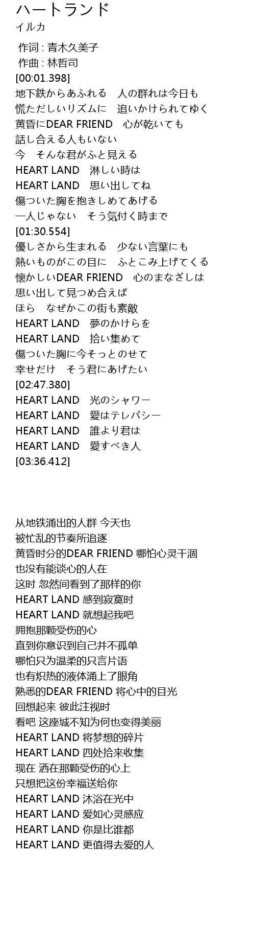 | [03:28.262] | HEART LAND 愛すべき人 |