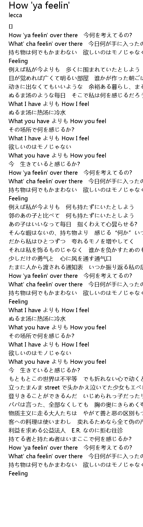 | How 'ya feelin' over there 今何を考えてるの? | |