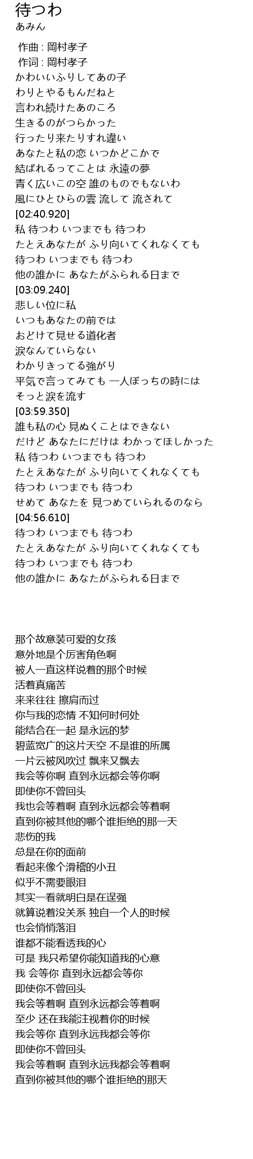 | [02:54.030] | 待つわ いつまでも 待つわ |