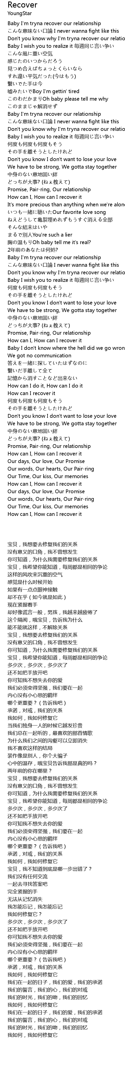| [02:35.260] | Don't you know why I'm tryna recover our relationship |