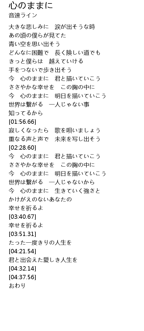 | [02:54.01] | 今 心のままに 明日を描いていこう |
