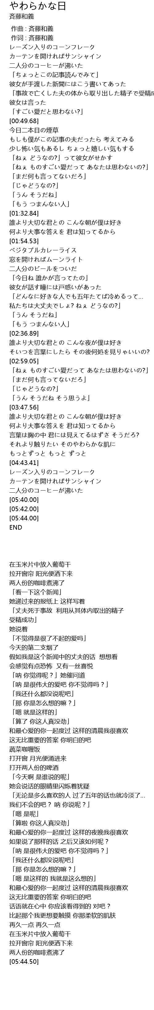 | [00:00.00] | 作曲 : 斉藤和義 |
