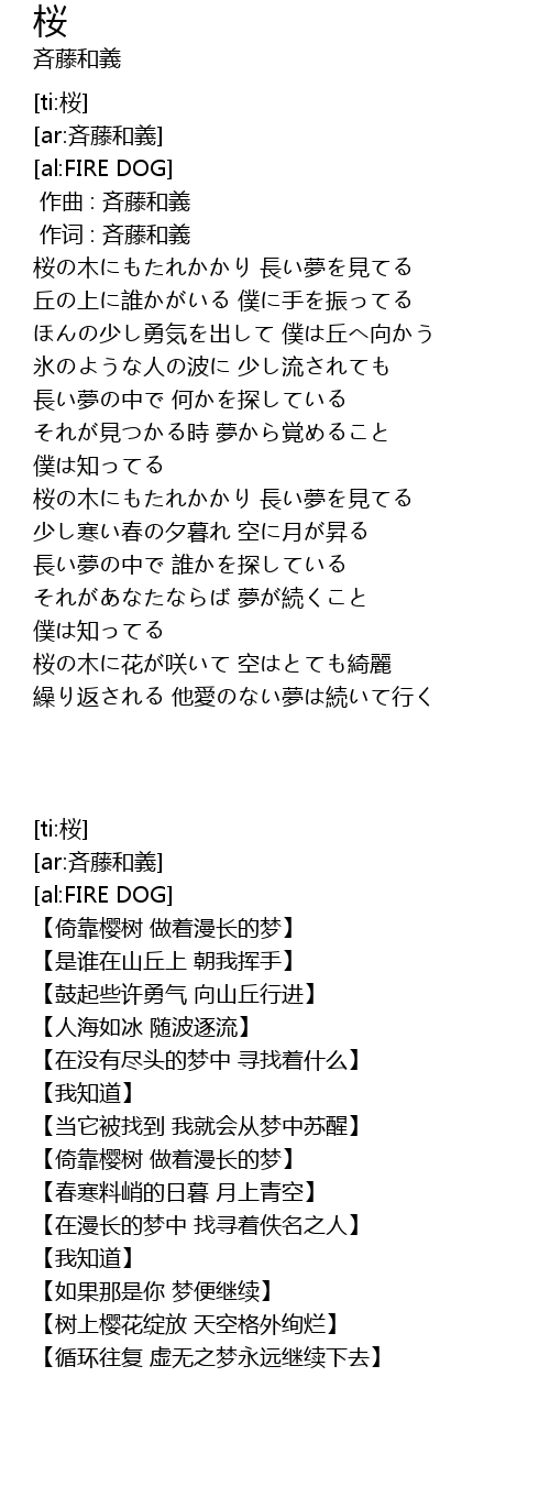 | [02:22.02] | 桜の木にもたれかかり 長い夢を見てる |