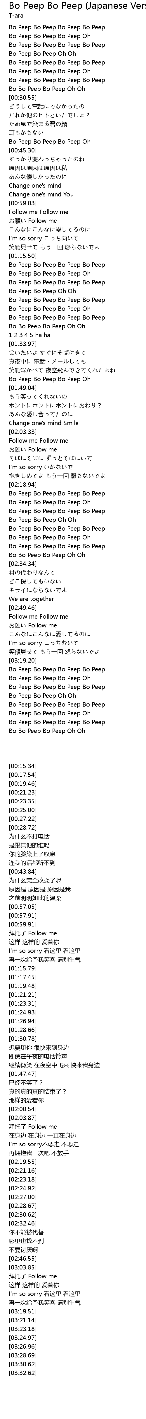 | [03:19.51] | Bo Peep Bo Peep Bo Peep Bo Peep |