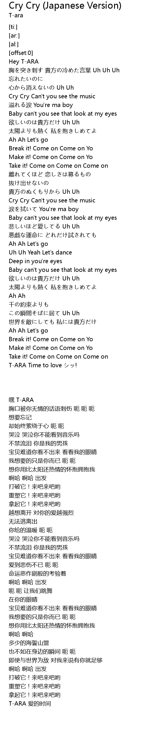 | [00:42.03] | Cry Cry Can' t you see the music |