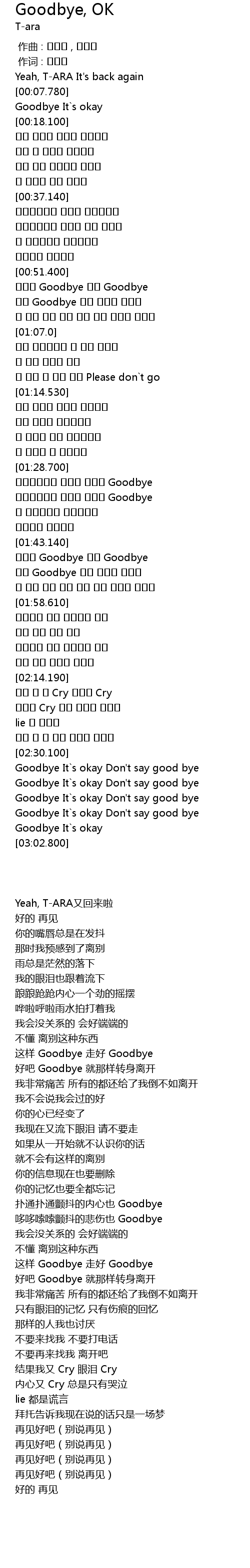 | [02:30.790] | Goodbye It`s okay Don't say good bye |