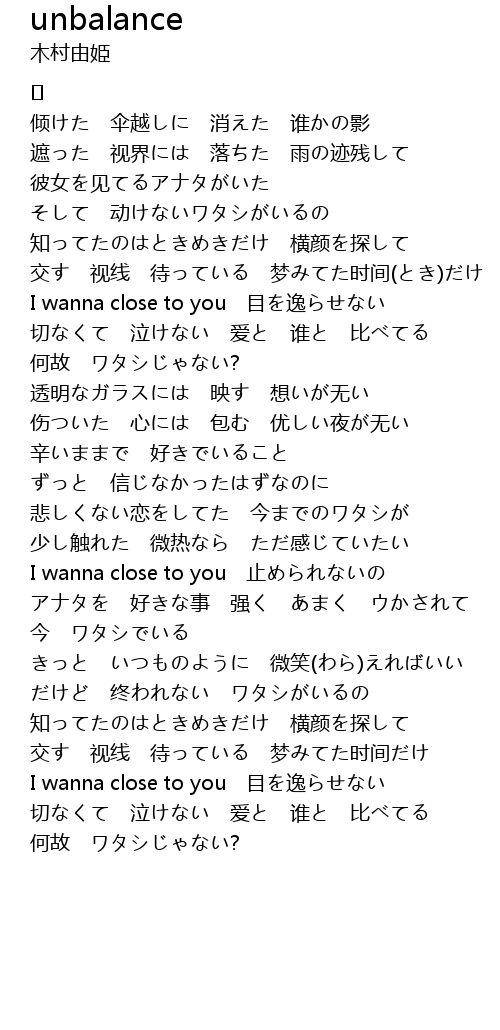 | I wanna close to you 止められないの | |