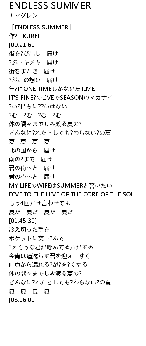 | [00:01.61] | 「ENDLESS SUMMER」 |
