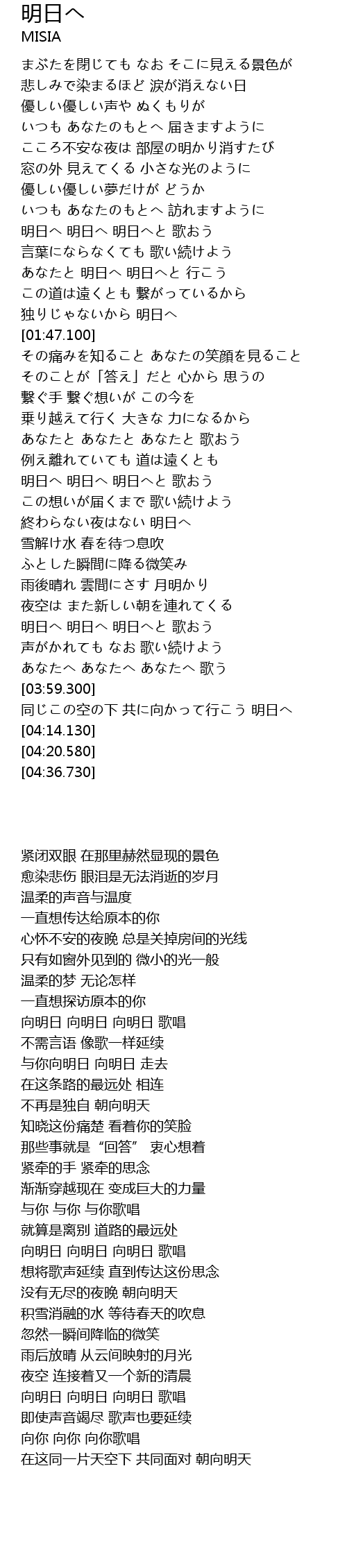 | [03:39.460] | 明日へ 明日へ 明日へと 歌おう |
