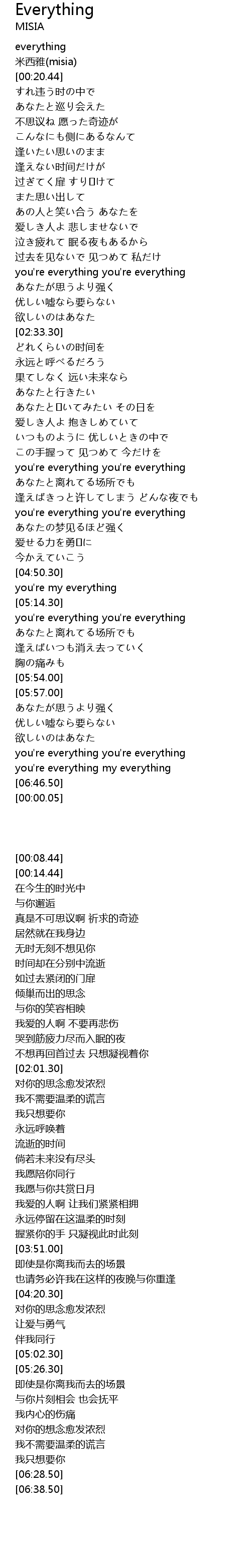 | [06:38.50] | you're everything my everything |
