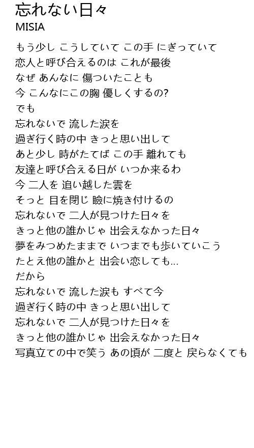 | Song | 忘れない日々 |