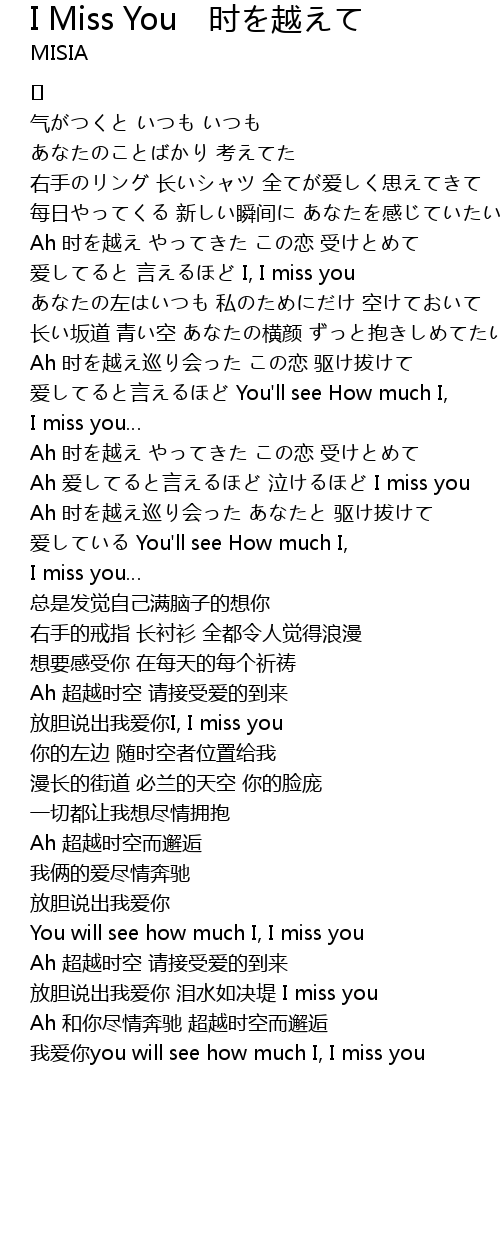 | Ah 爱してると言えるほど 泣けるほど I miss you | |