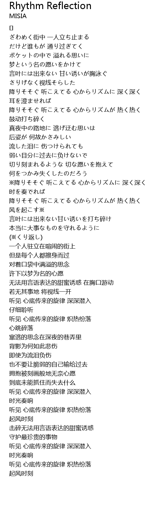 | ※降りそそぐ 听こえてる 心からリズムに 深く深く | |