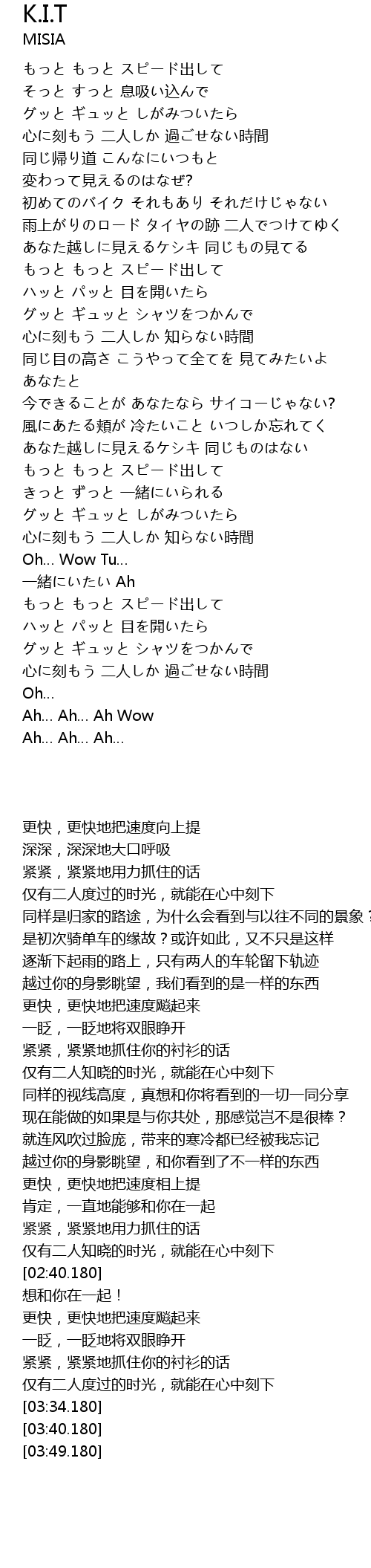 | [03:14.180] | もっと もっと スピード出して |
