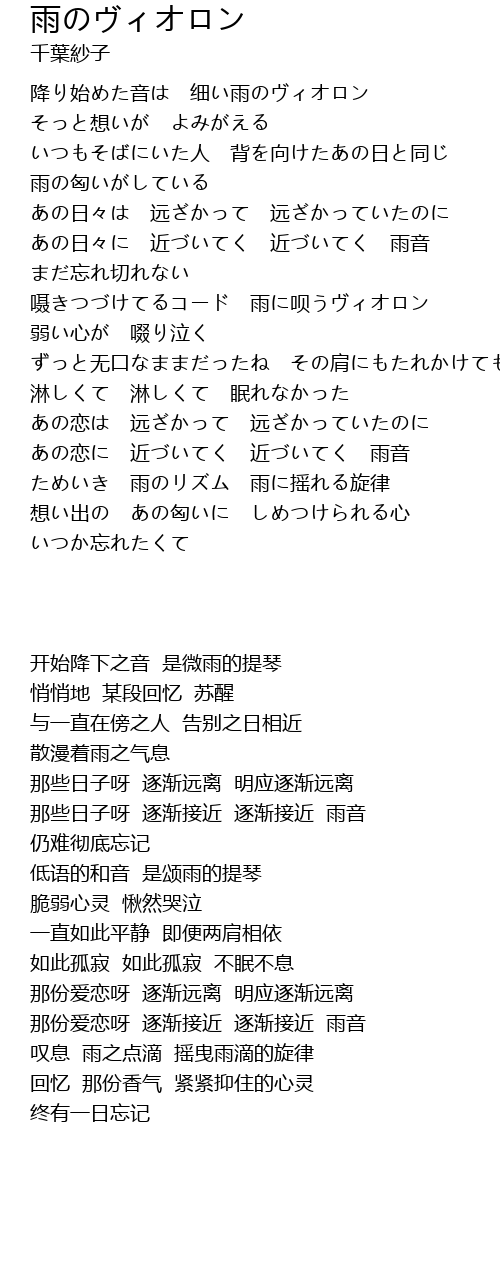 降り始めた音は 细い雨のヴィオロン |