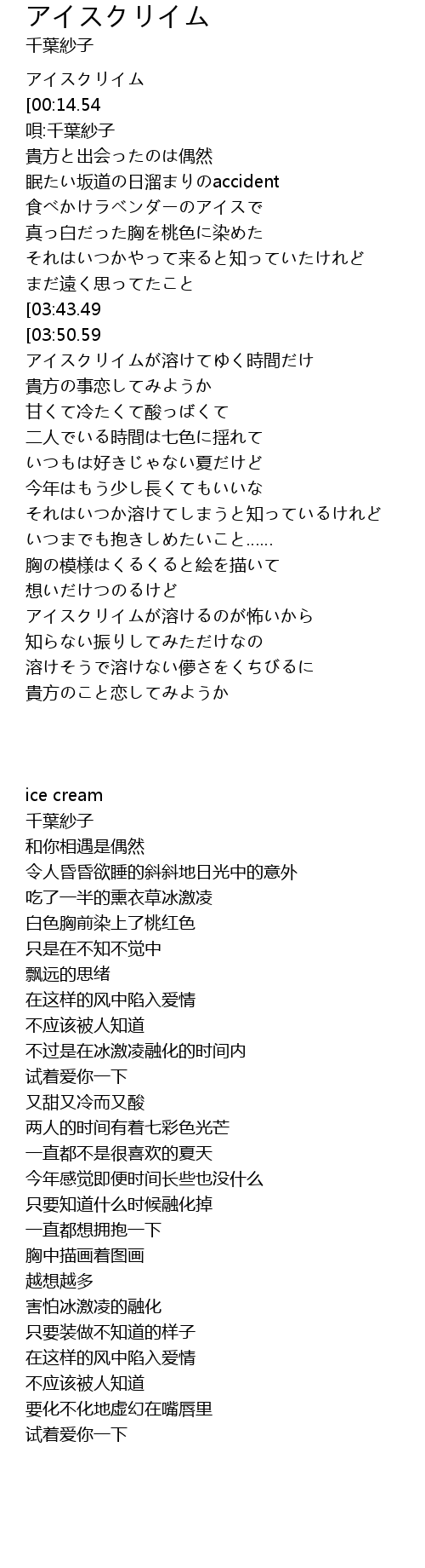 | [03:29.18] | アイスクリイムが溶けるのが怖いから |