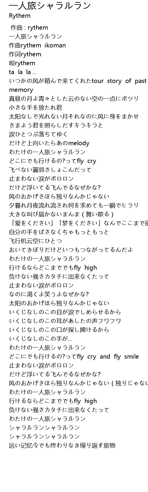 | [03:51.69] | わたけの一人旅シャラルラン |