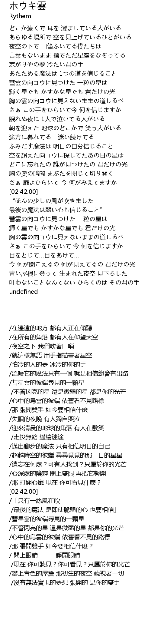 | [00:48.00] | あたためる魔法は 1つの道を信じること |