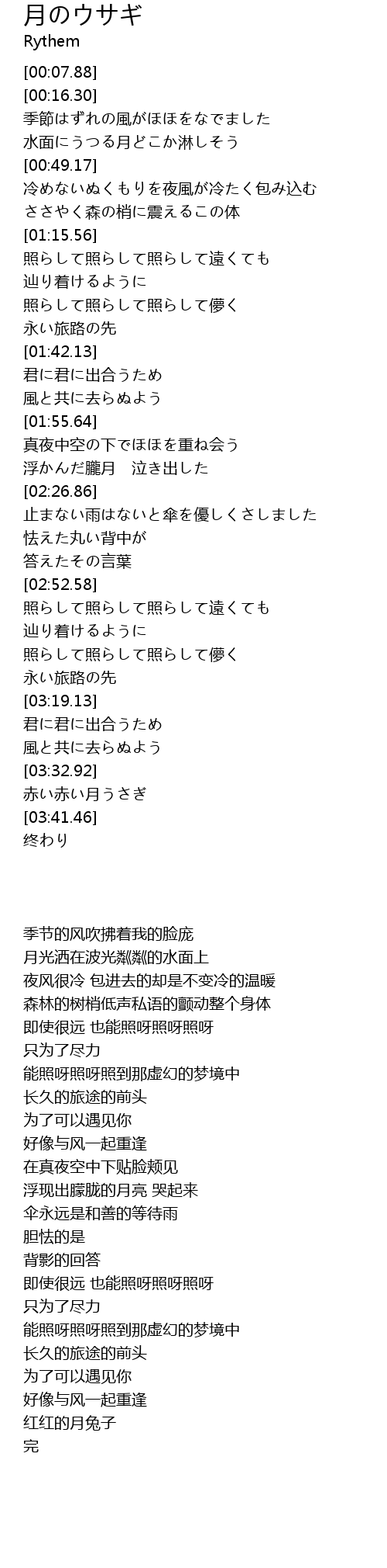 | [00:37.43] | 水面にうつる月どこか淋しそう |